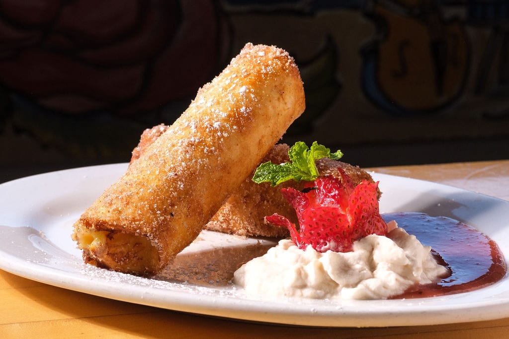 HOUSE-MADE CHEESECAKE FILLING | FRESH STRAWBERRIES | CINNAMON SUGAR | STRAWBERRY SAUCE